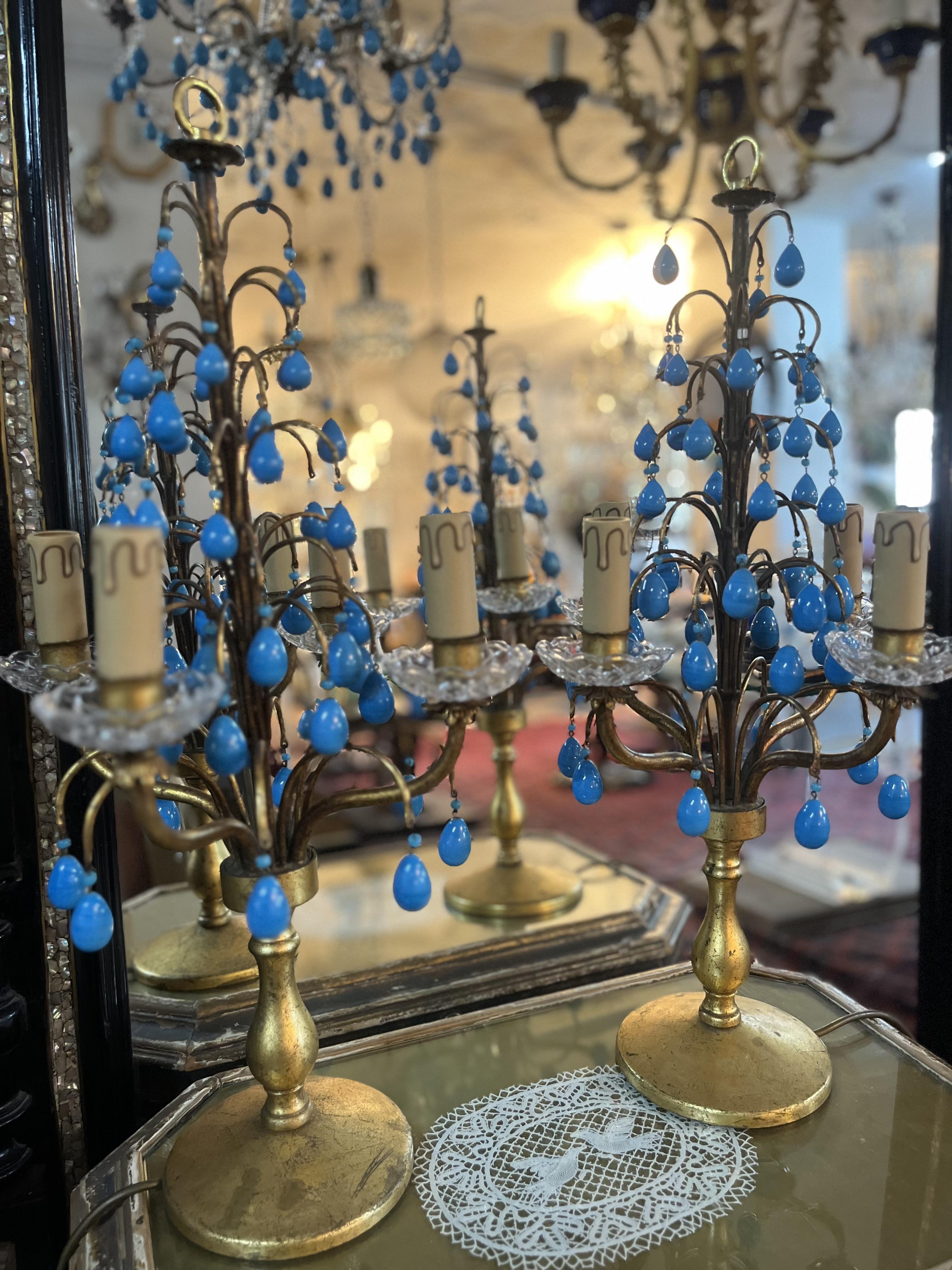Mavi opalin boncuklu ve Necef taşlı 6 kollu avize ve çift abajur takımı